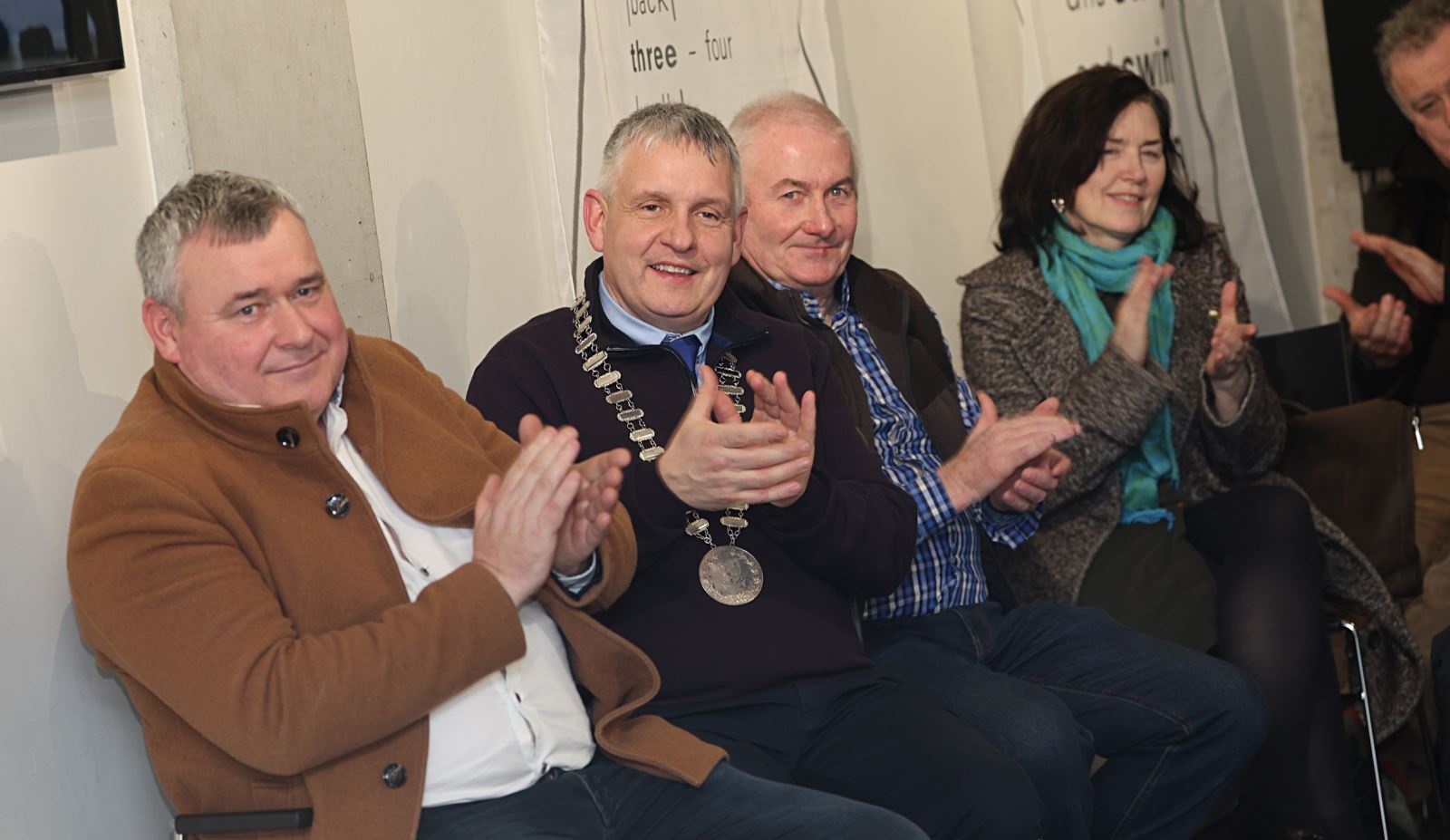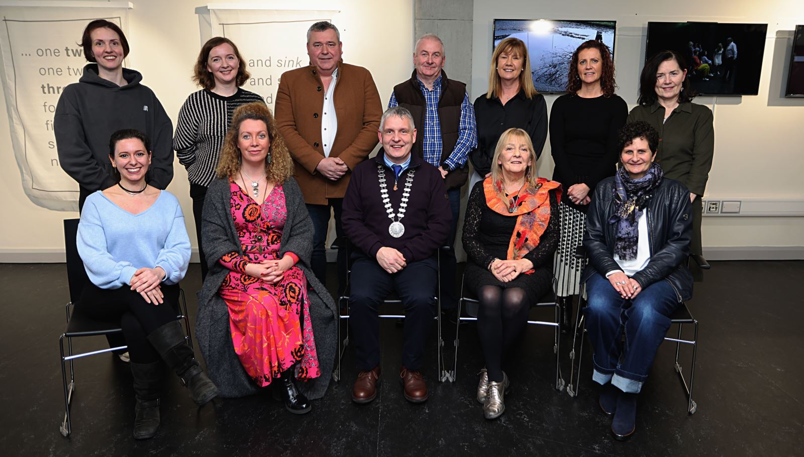 Front (L–R): Rebeca Sanchez (Flamenco Dance Artist); Karina Charles Lynch (Arts Officer, Cavan County Council); Cllr Trevor Smith (Cathaoirleach, Ballyjamesduff MD); Marian Crowe (Sean-Nós Dance Artist); Catriona O’Reilly (former Arts Officer, Cavan County Council)